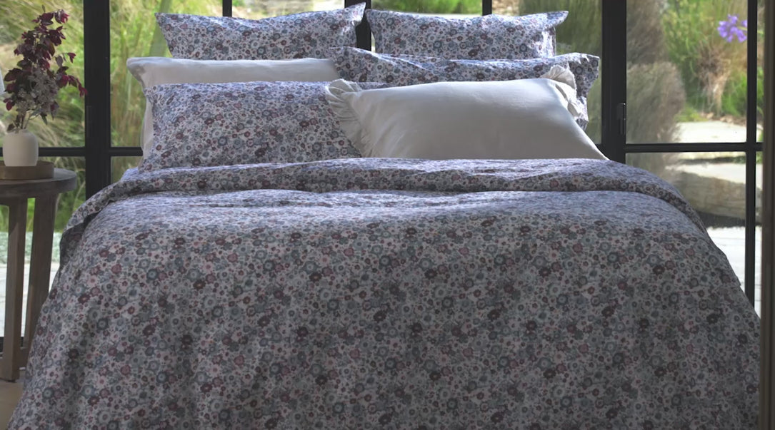 Zinnia organic cotton bed linen features a wild flower inspired ditsy floral design created in-house.