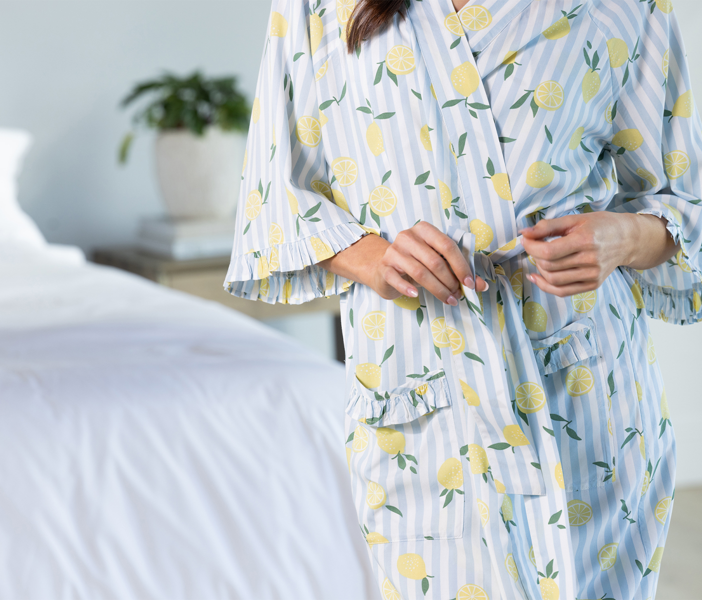 Our sleepwear pieces are made from beautiful natural fabrics which makes them easy to care for. We recommend a cold machine wash with mild soap, a line dry and warm iron for all our sleepwear collections. It is best to wash sleepwear separately from other items to avoid damage as they tend to be delicate. Do not bleach, soak, leave wet or tumble dry. Following our laundering instructions and caring carefully for your sleepwear items will keep them looking beautiful, to be worn for years to come. We also recommend having several sets of sleepwear so you can enjoy a fresh set every 4 to 5 days.