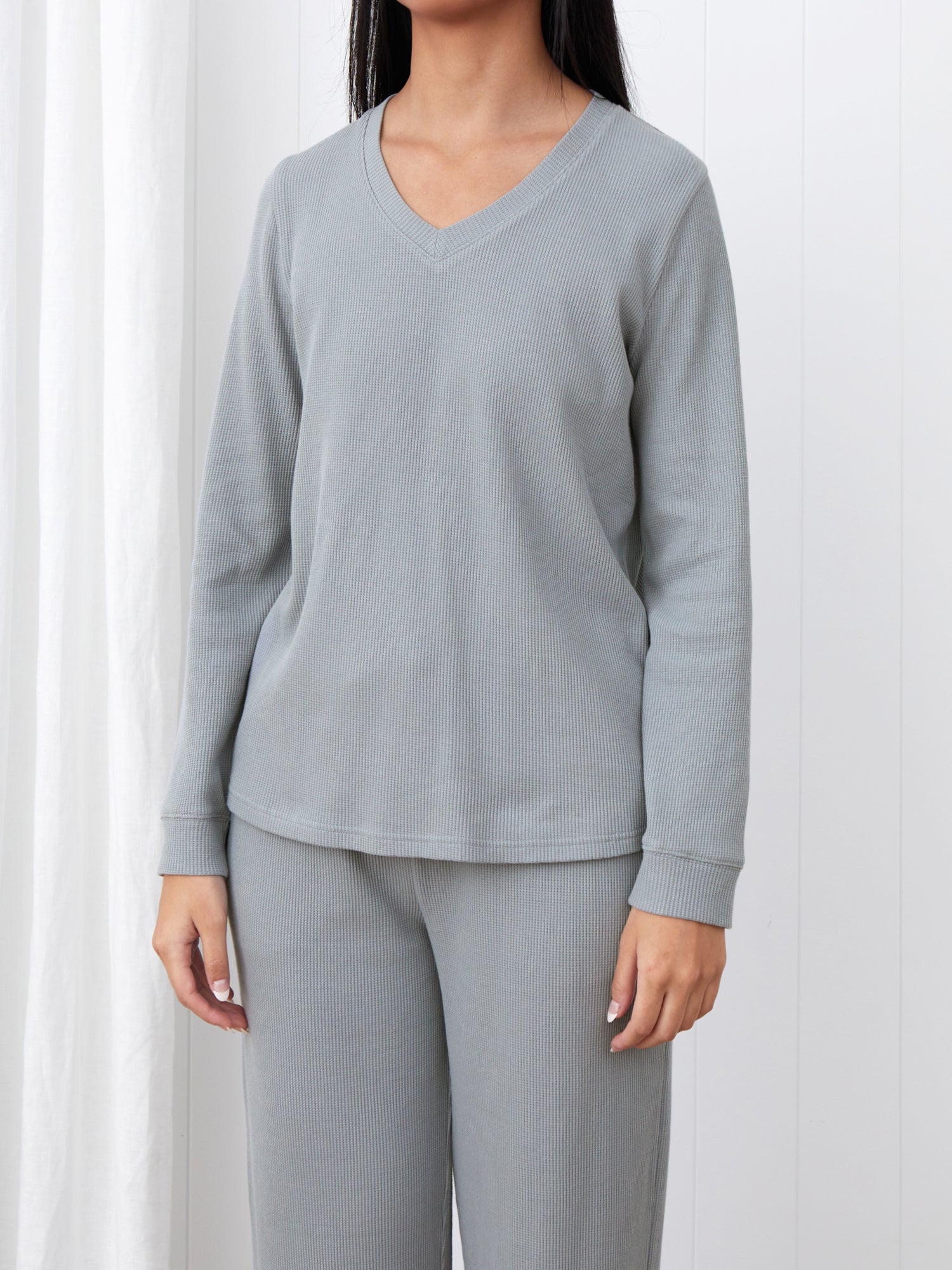 Balance Waffle Knit Long Sleeve Tee in Mist