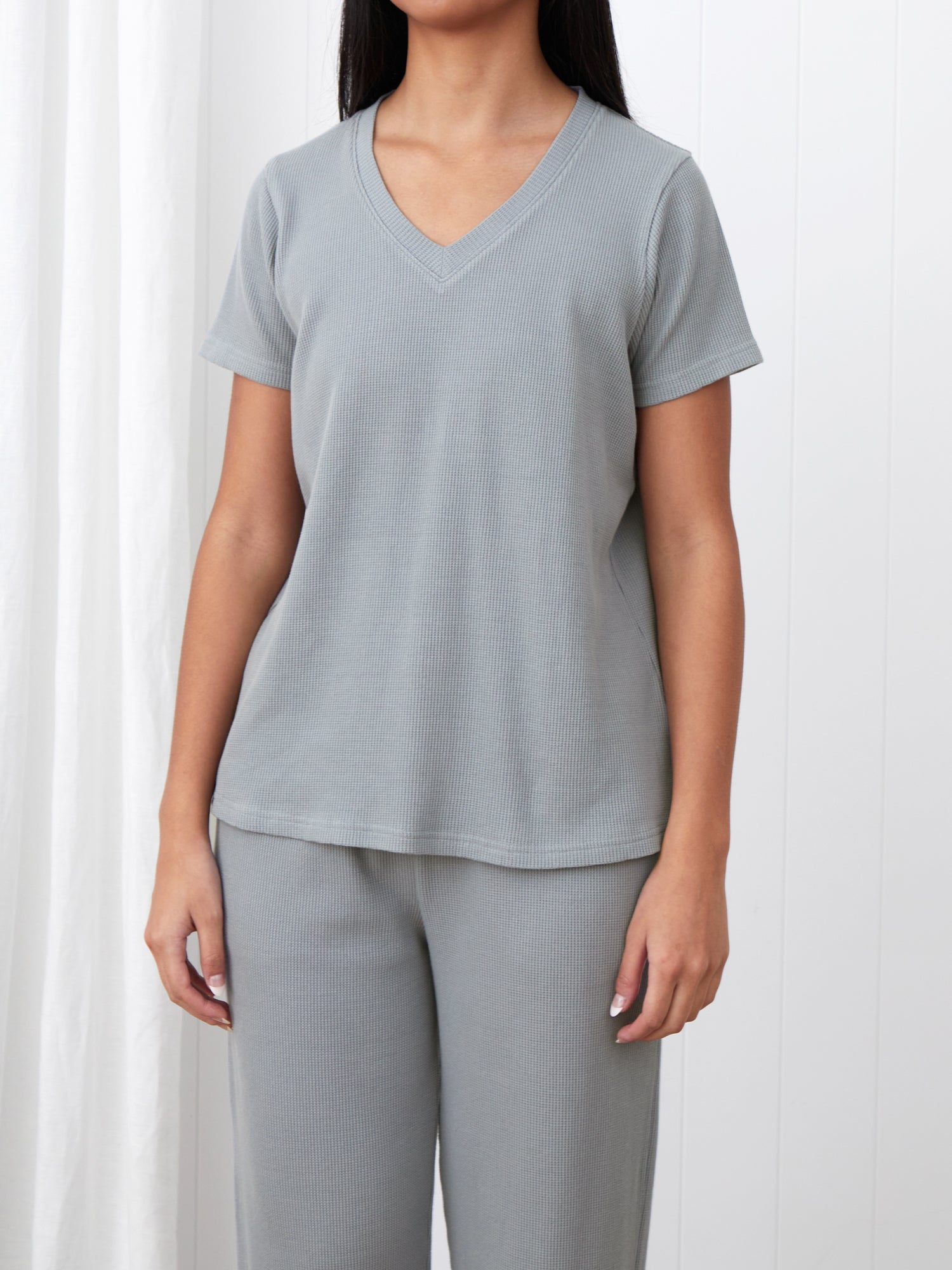 Our Balance Waffle Knit Loungewear range is designed for relaxing in at home and mixing with patterned sleepwear separates. Crafted from a soft cotton waffle knit fabric, these pieces are comfy and cosy. Our Balance Waffle Knit Tee Shirt is a roomy style with a V-neckline and short sleeves.