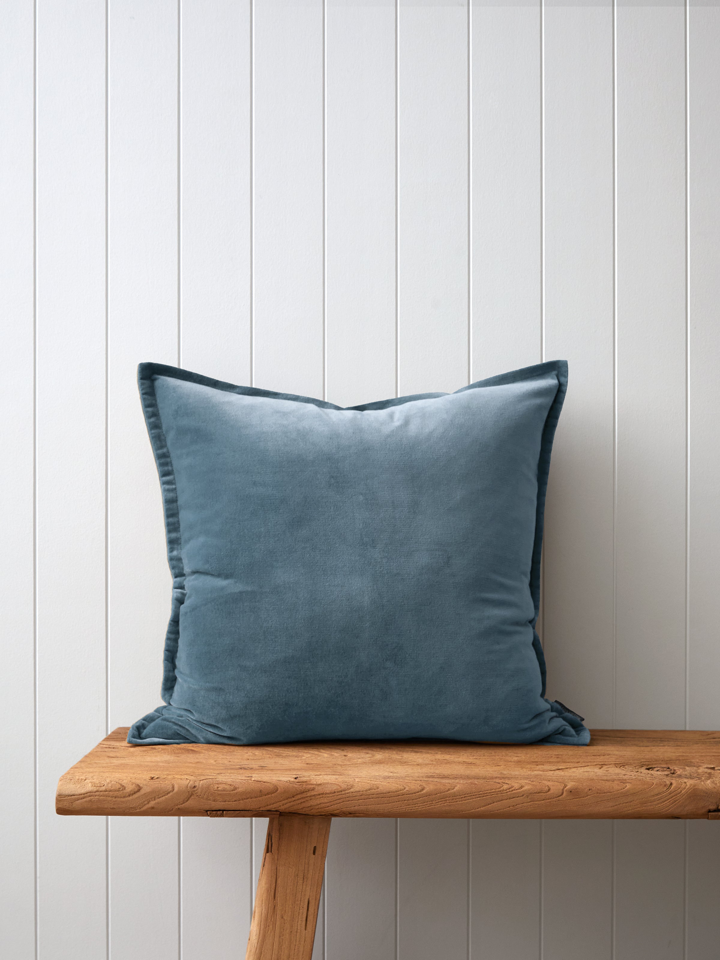 Size: 55cm x 55cm +1.5cm sham edge. Made from cotton velvet with zip closure. Plain velvet front and reverse. Please note: COVER ONLY - cushion inner can be purchased separately. Made to fit a 60cm x 60cm large square cushion inner. Designed with love in NZ and made exclusively for Wallace Cotton. Please follow instructions on care label for laundering.