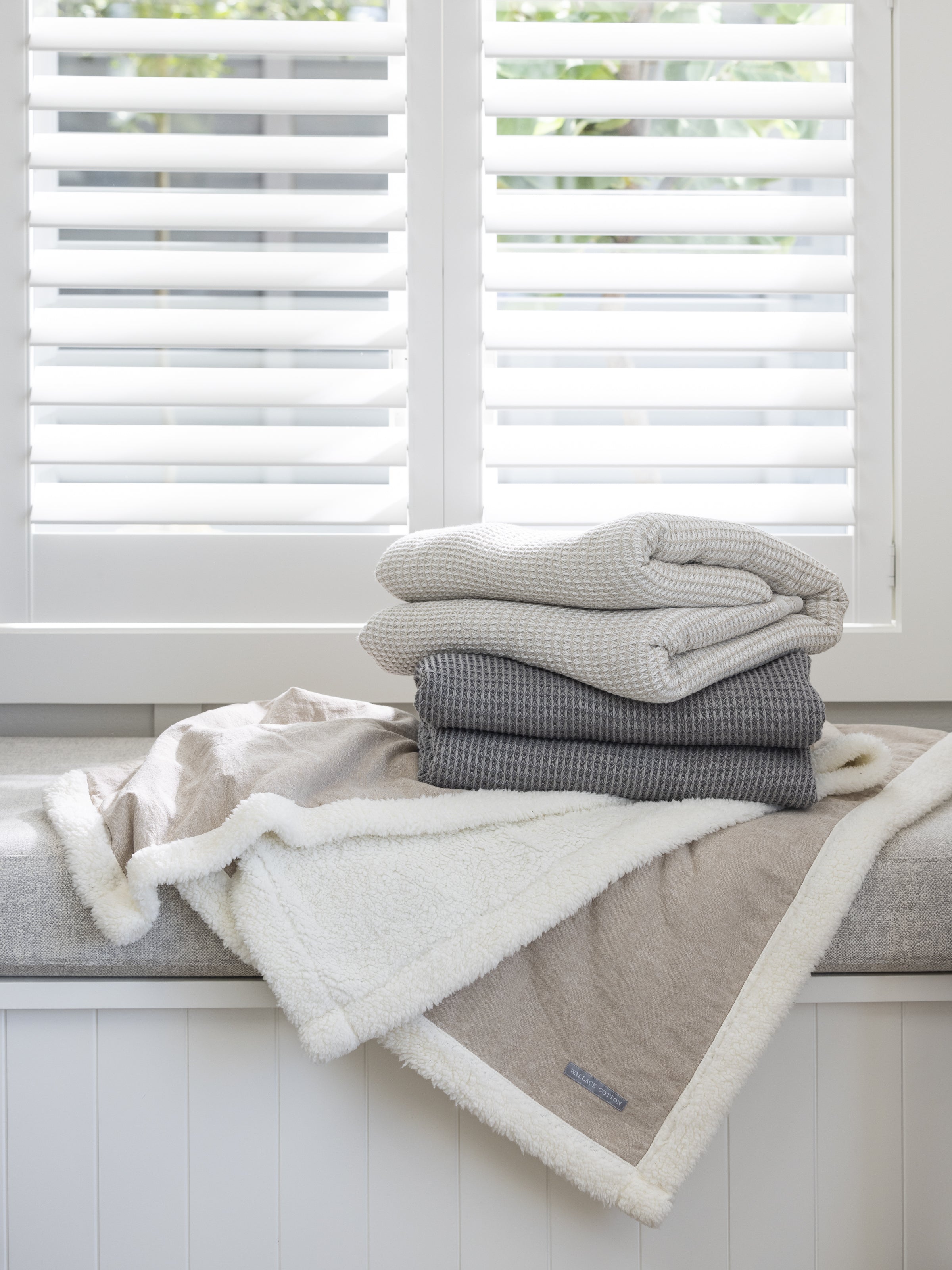 Layer your bed with the beautiful style of our classic Chambray Waffle Blanket. Made from pure yarn dyed waffle weave cotton, our Chambray Waffle Blanket is soft and lightweight. The generous sizing is perfect for sleepy afternoon siestas on every bed in your home. Our Chambray Waffle Blanket is thoughtfully designed in colours to easily coordinate with all bedding.