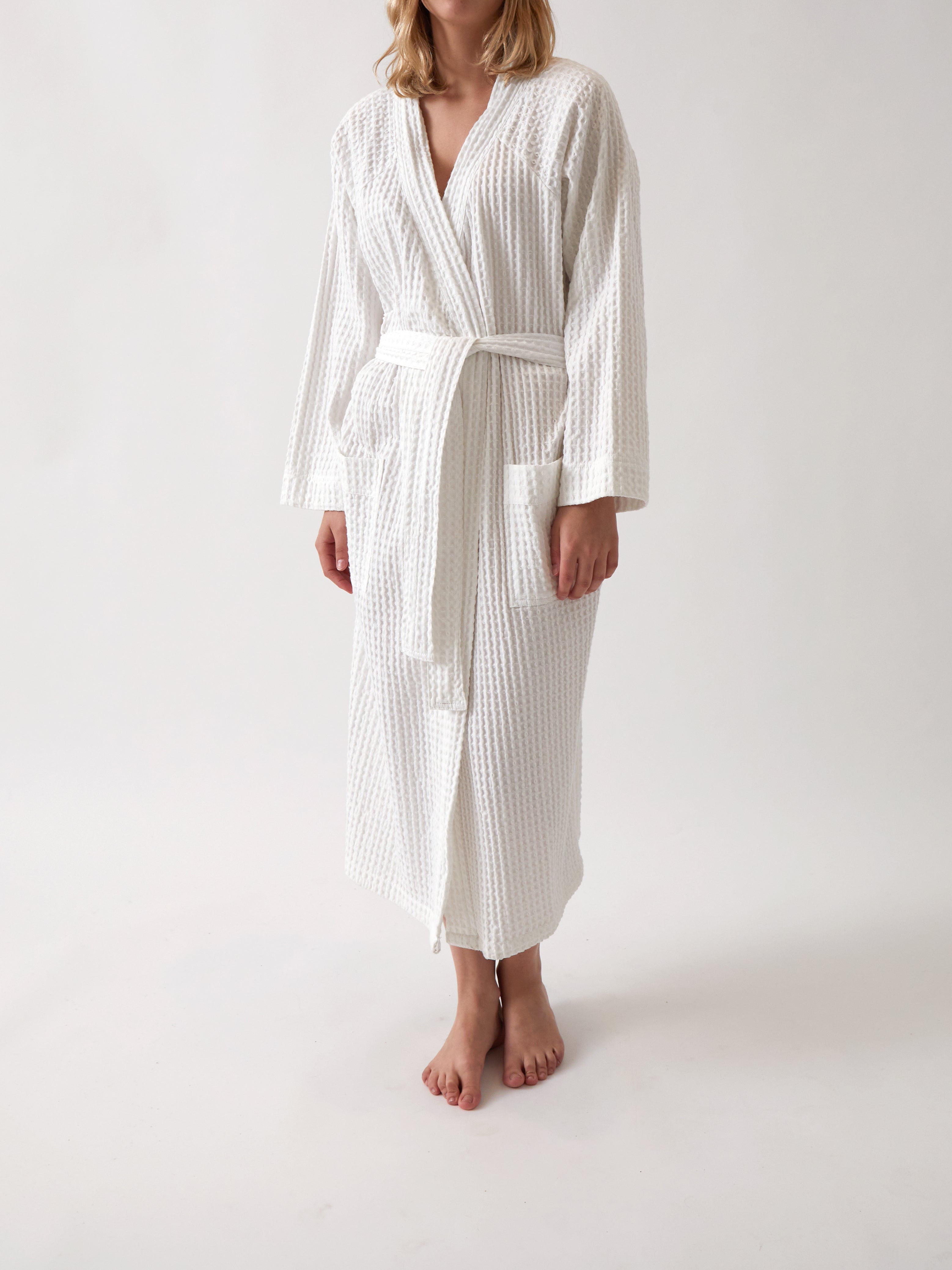 Wrap yourself in the super soft waffle of a Clooney Robe. Made from pure cotton waffle weave fabric, our Clooney Robe is a roomy, unisex design. Lovely for relaxing in, slow starts and thoughtful gifting.