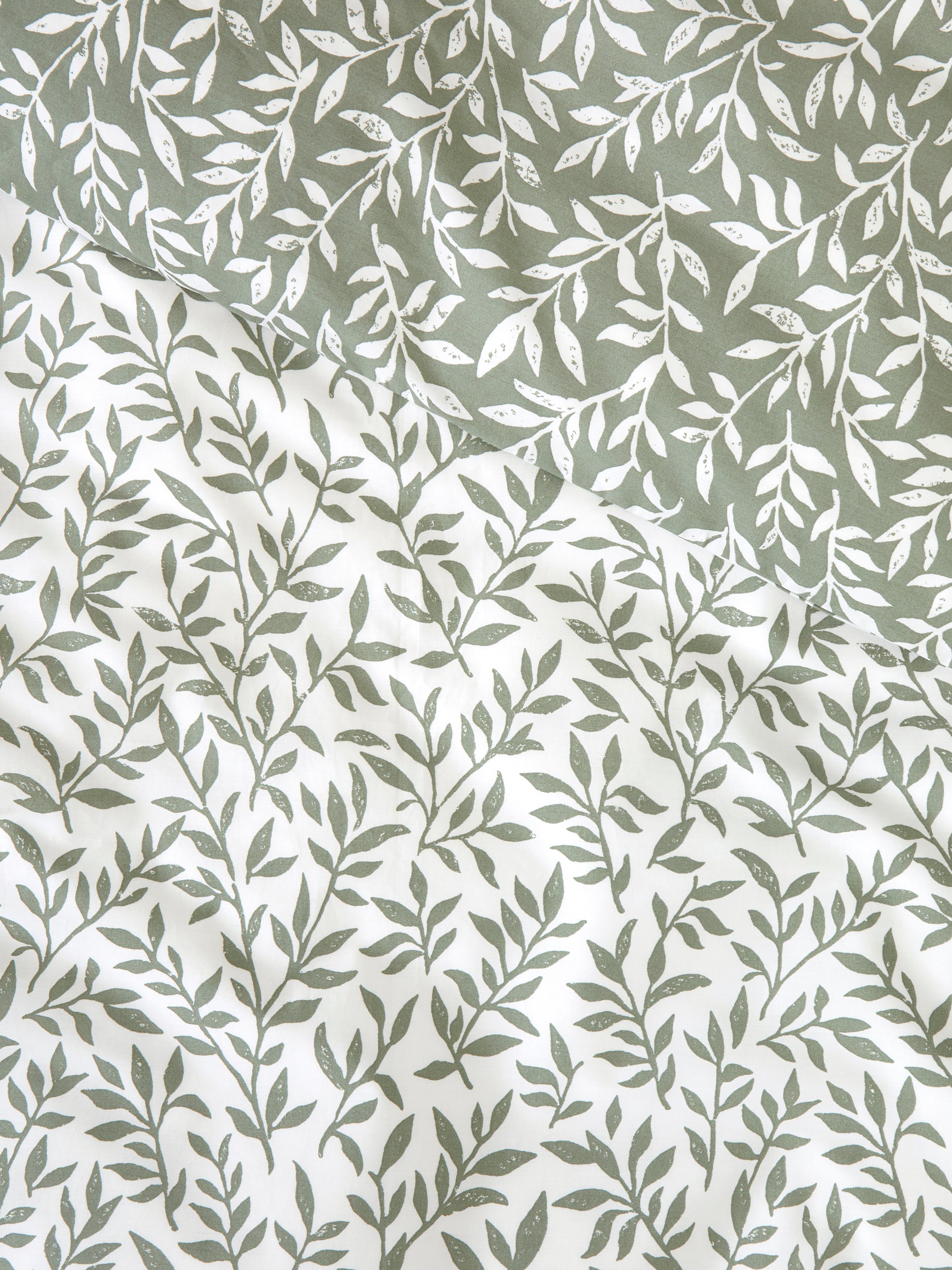 Set includes 1 x duvet cover and 2 x matching oxford pillowcases. (1 x pillowcase with S and KS sizes). Made from 250 thread count organic cotton with 5cm sham and unique hidden button close. Green leaves on a white base with white leaves on a green base on the reverse. Packed in matching fabric bag for handy storage. Designed with love in NZ and made exclusively for Wallace Cotton. Our bed linen has been quality checked to meet our exacting standards for size and fit. We have added shrinkage allowance to ensure a perfect fit after washing. Please follow instructions on care label for laundering.