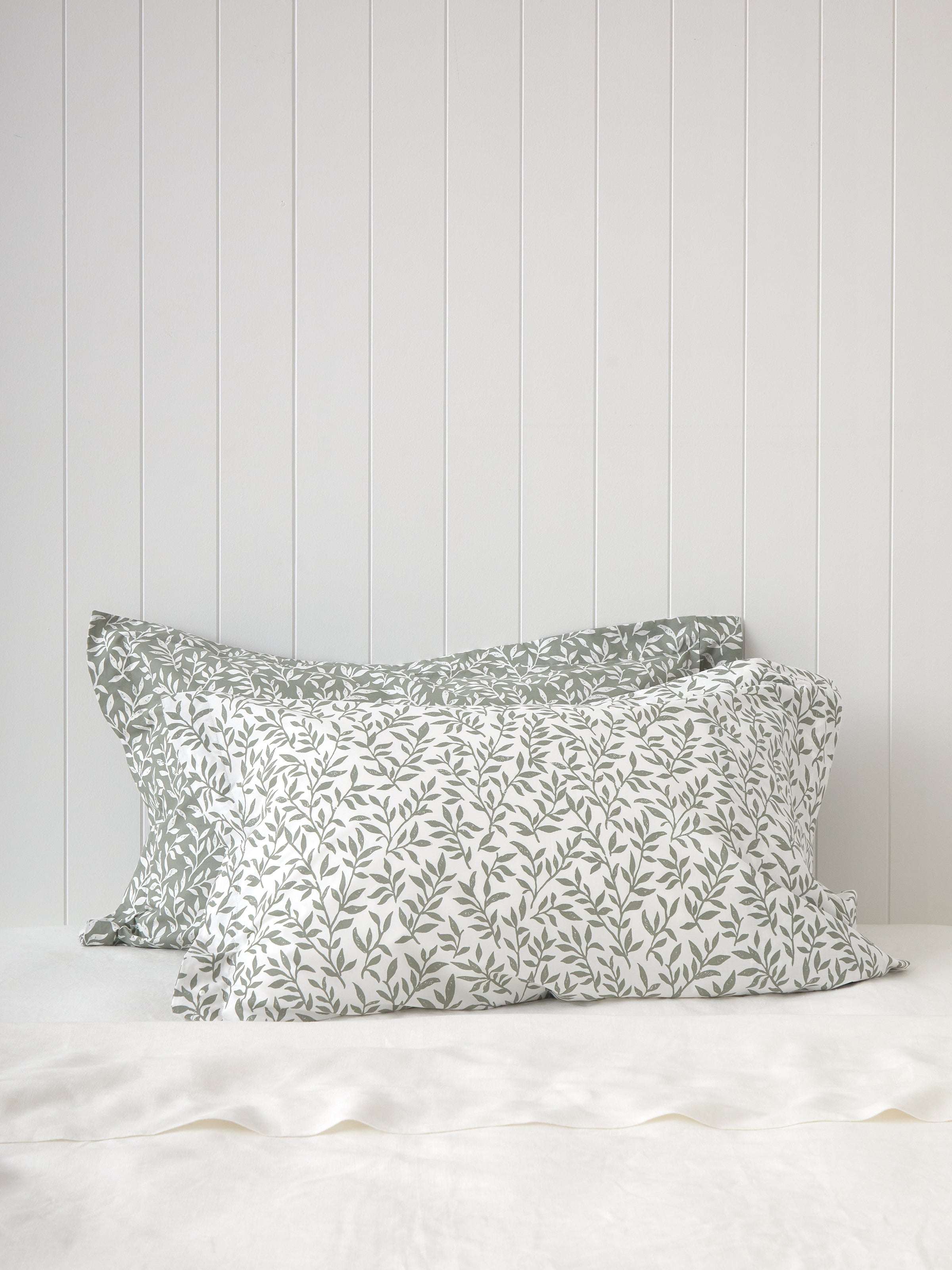 Garden Path Oxford Pillowcase Set | Green Leaf-1