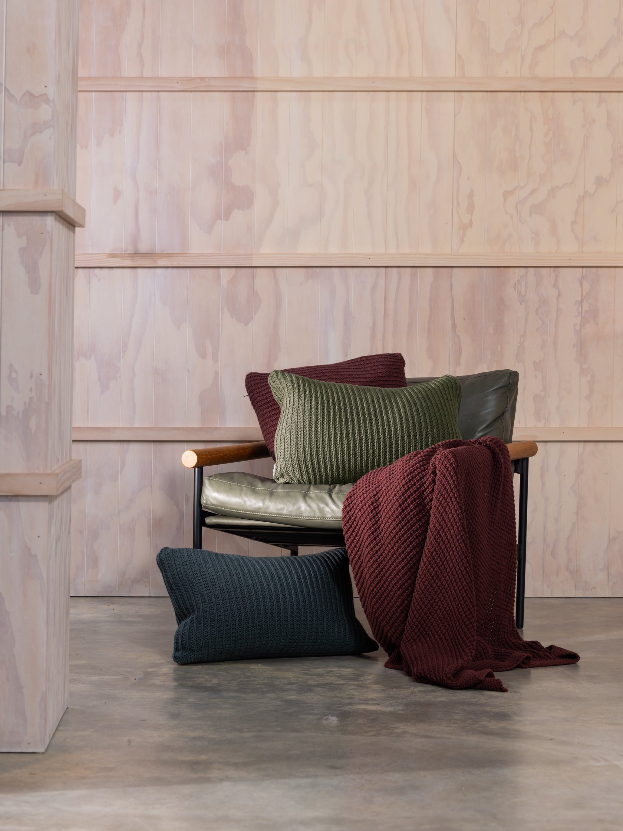 Size: 35cm x 55cm. Made from cotton with zip closure. Moss stitch knit on both front and reverse. Please note: COVER ONLY - cushion inner can be purchased separately. Made to fit a 40cm x 60cm rectangle cushion inner. Designed with love in NZ and made exclusively for Wallace Cotton. Please follow instructions on care label for laundering.