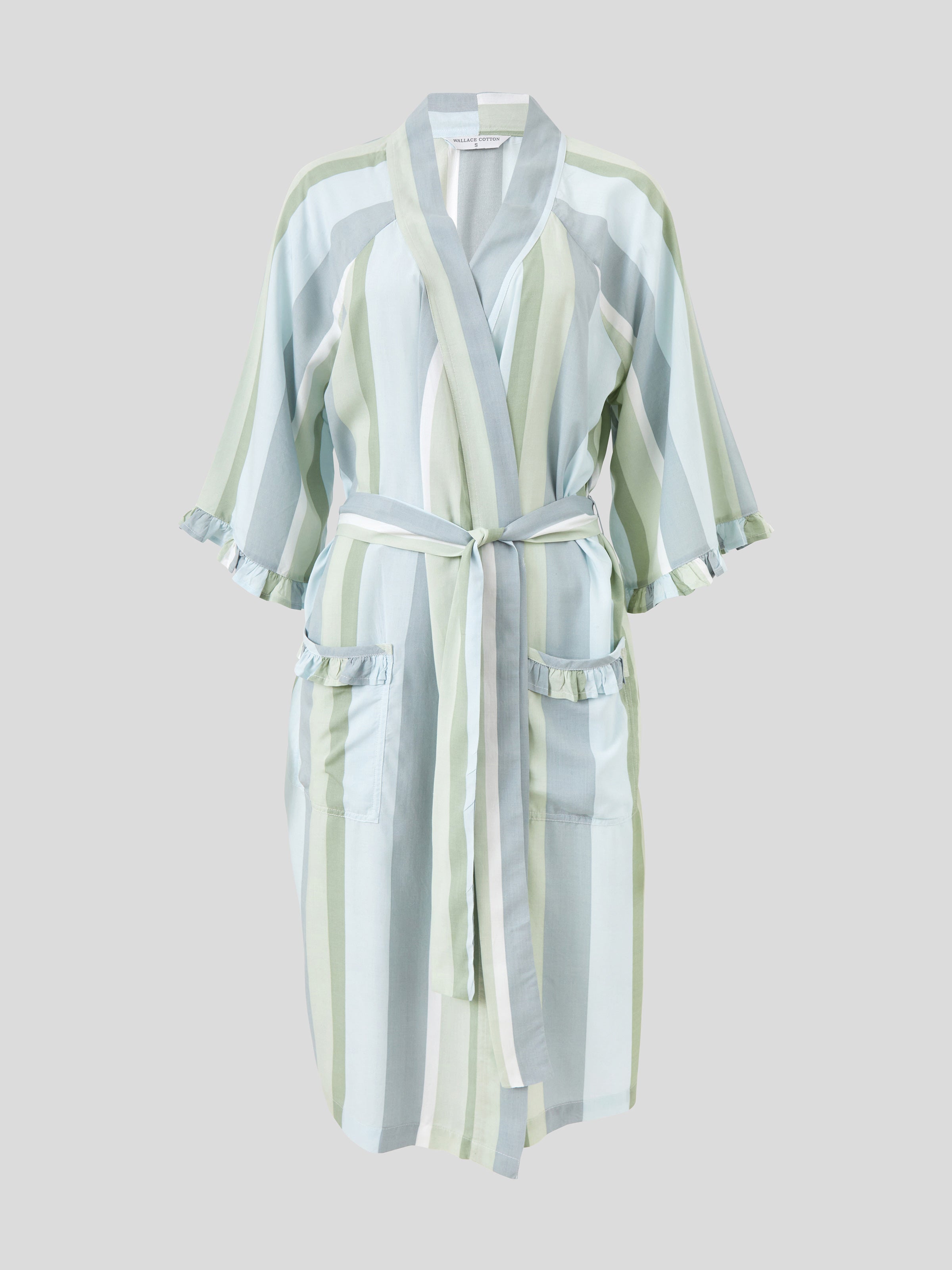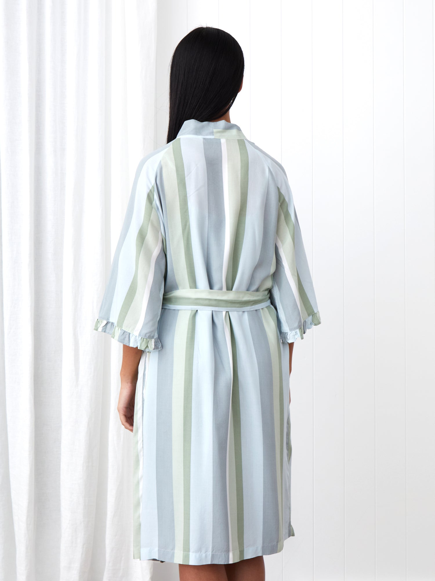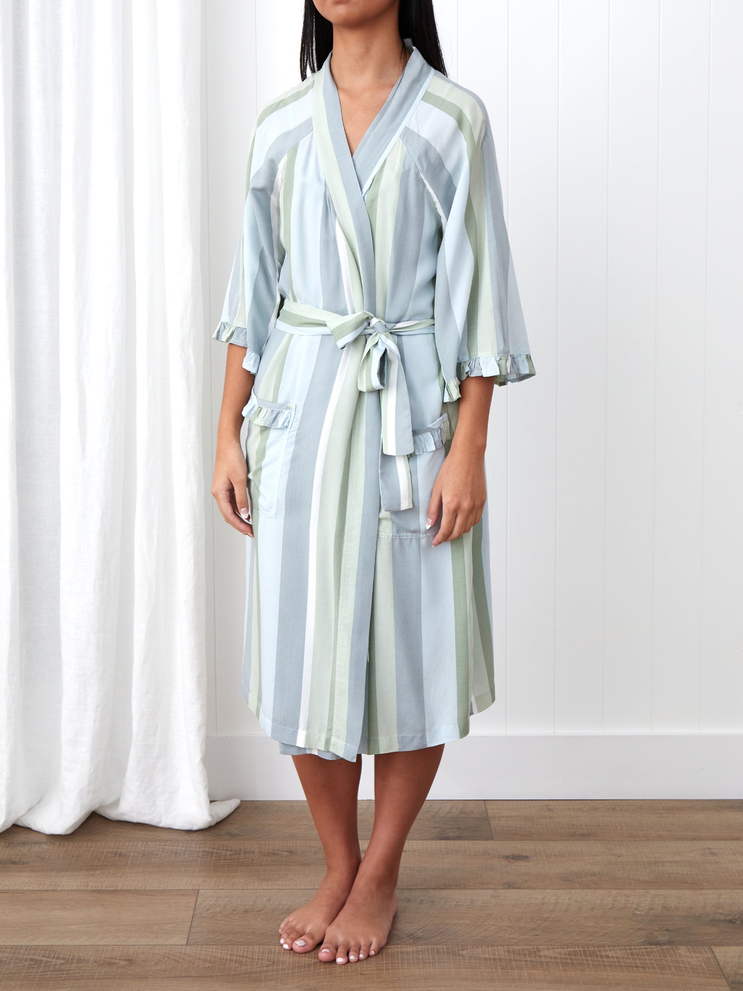 Choose Marlow Sleepwear pieces in timeless stripes for a fresh look this season. Crafted from soft plant-based modal in blues, greens and white for a beautiful, classic and comfortable sleep wardrobe. Our Marlow Robe has long sleeves, a matching fabric belt and handy pockets.