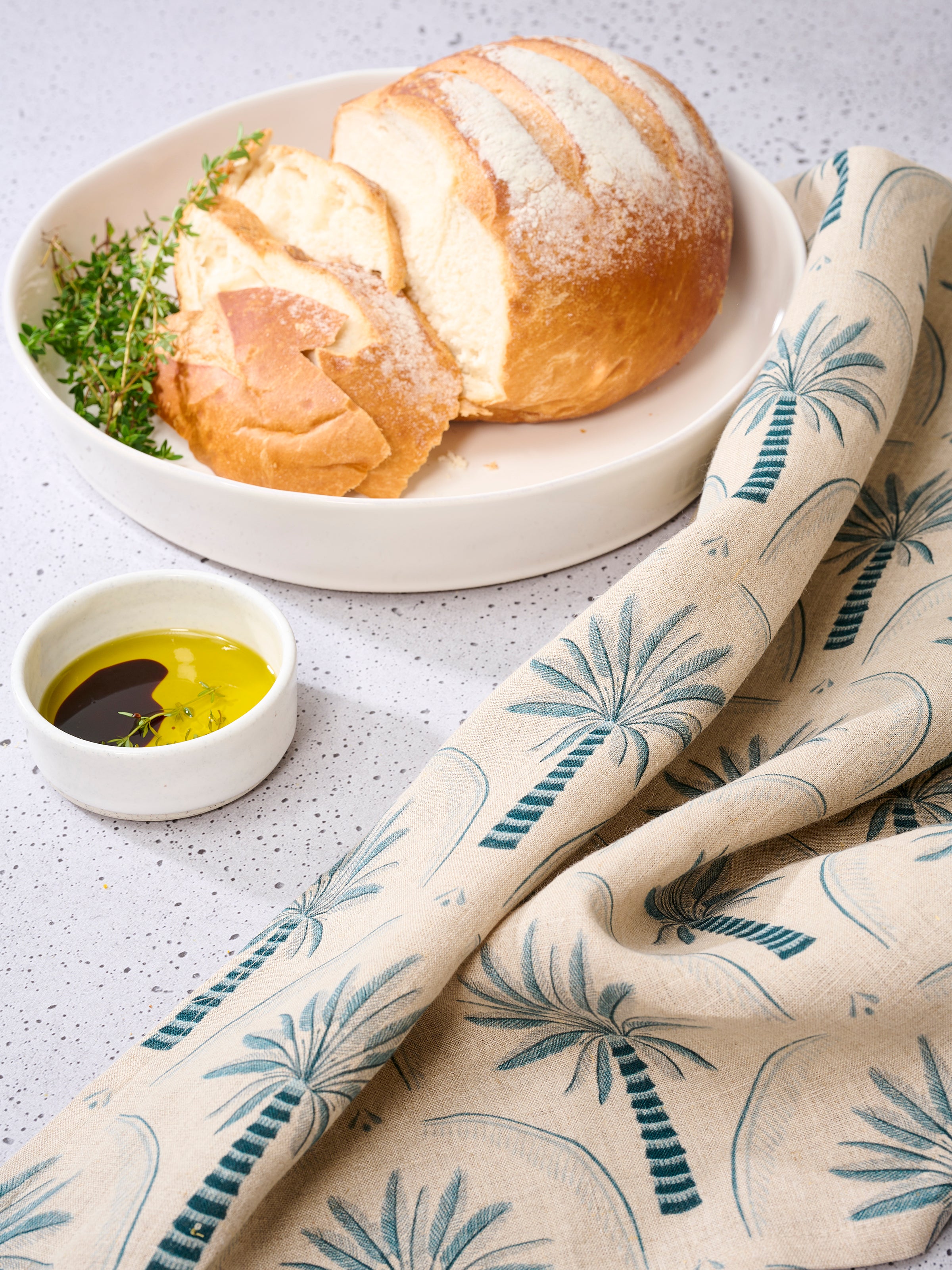 Add the luxury of pure linen to your everyday kitchen tasks with our beautiful, practical (the best for drying glassware) and giftable linen tea towels. Our Palmetto Linen Tea Towel features an all over palm tree motif in summery blue on a natural base, perfect for kitchen styling at home or the bach and for easy gifting. Made from pure European linen.