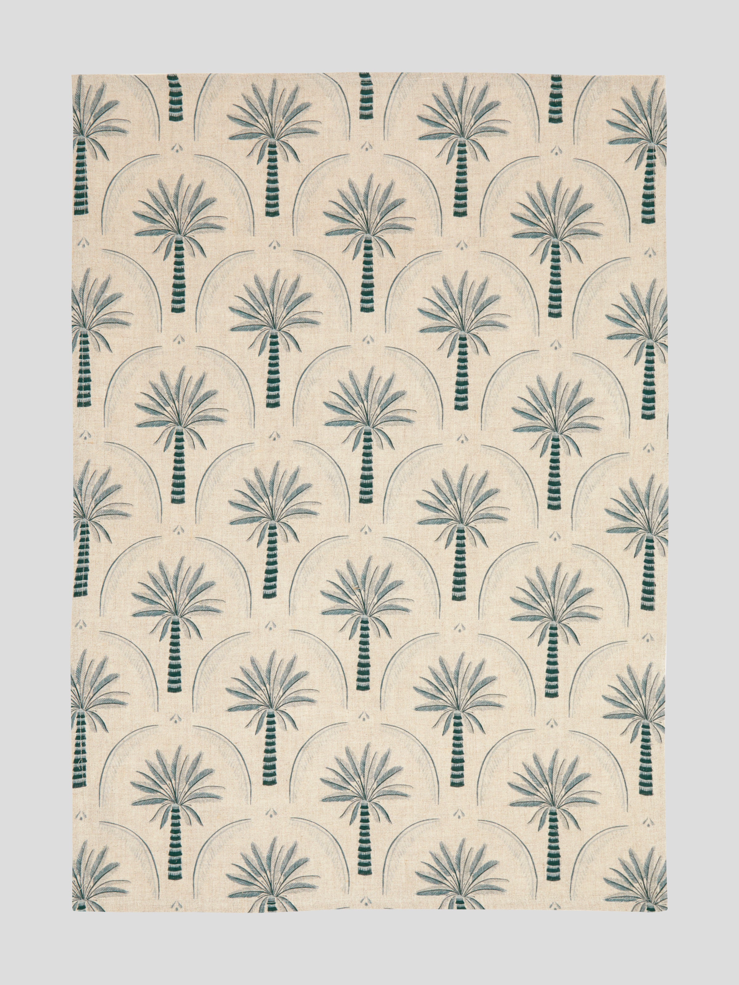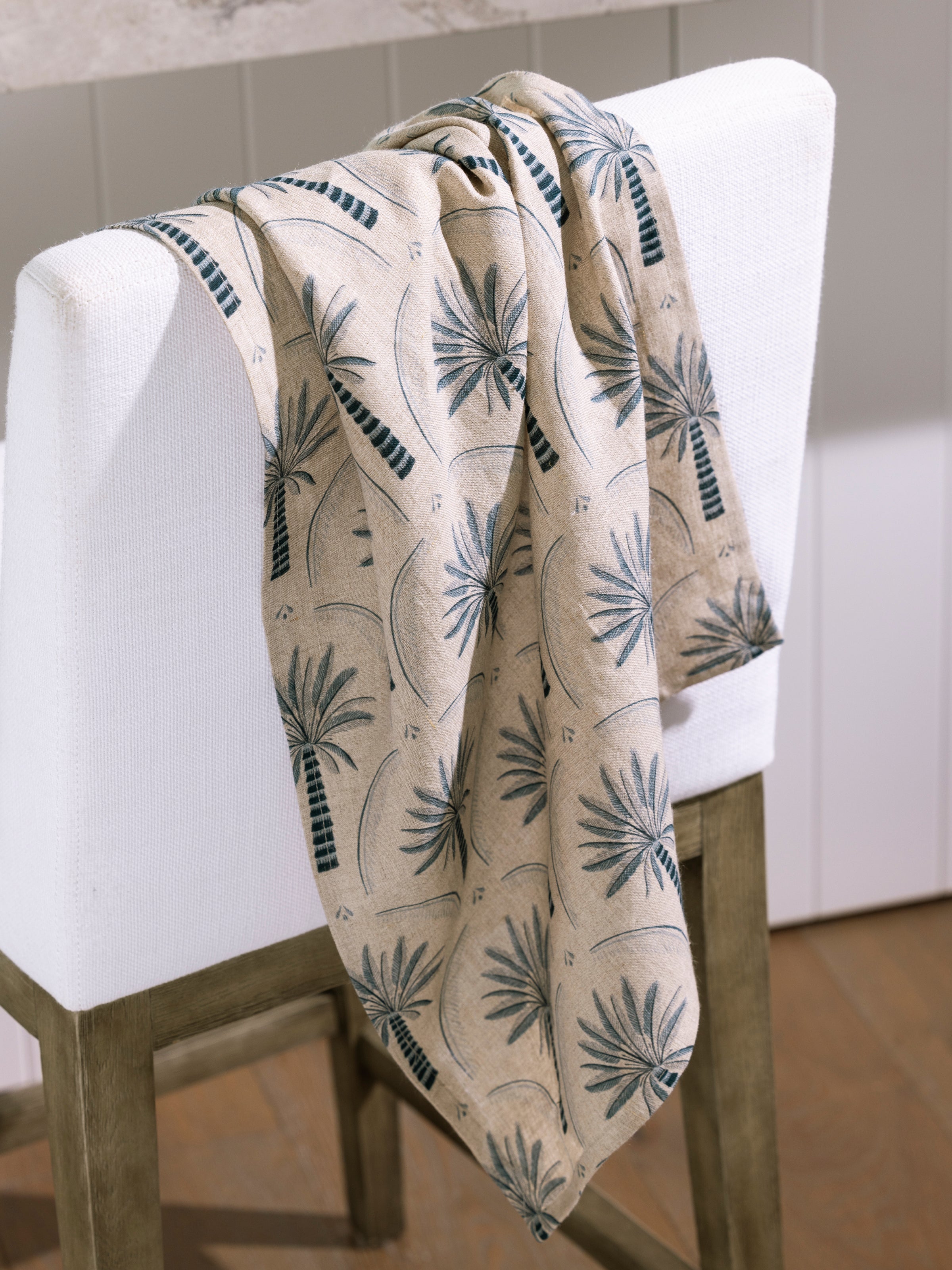 1 x tea towel. Size: 50cm x 70cm. Made from European linen in natural tone featuring an all over hand painted design of palm trees. Offers excellent absorbency and ideal for drying glassware. Handy loop for ease of hanging in your kitchen. Please follow instructions on care label for laundering.