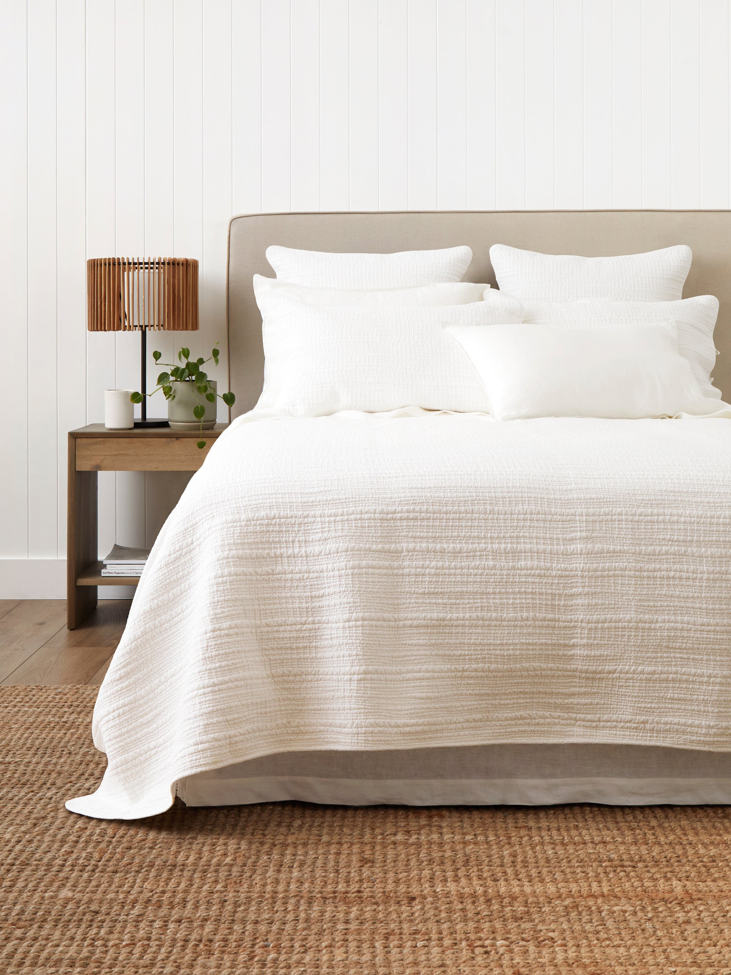 Make a simply beautiful bed with the lighter layers and subtle texture of our Serenade Quilt. Featuring irregular lineal stitching which creates an undulating quilted stripe for a gently textured effect. Designed in timeless, fresh white for easy styling with sheets and duvet covers in every colour and pattern.