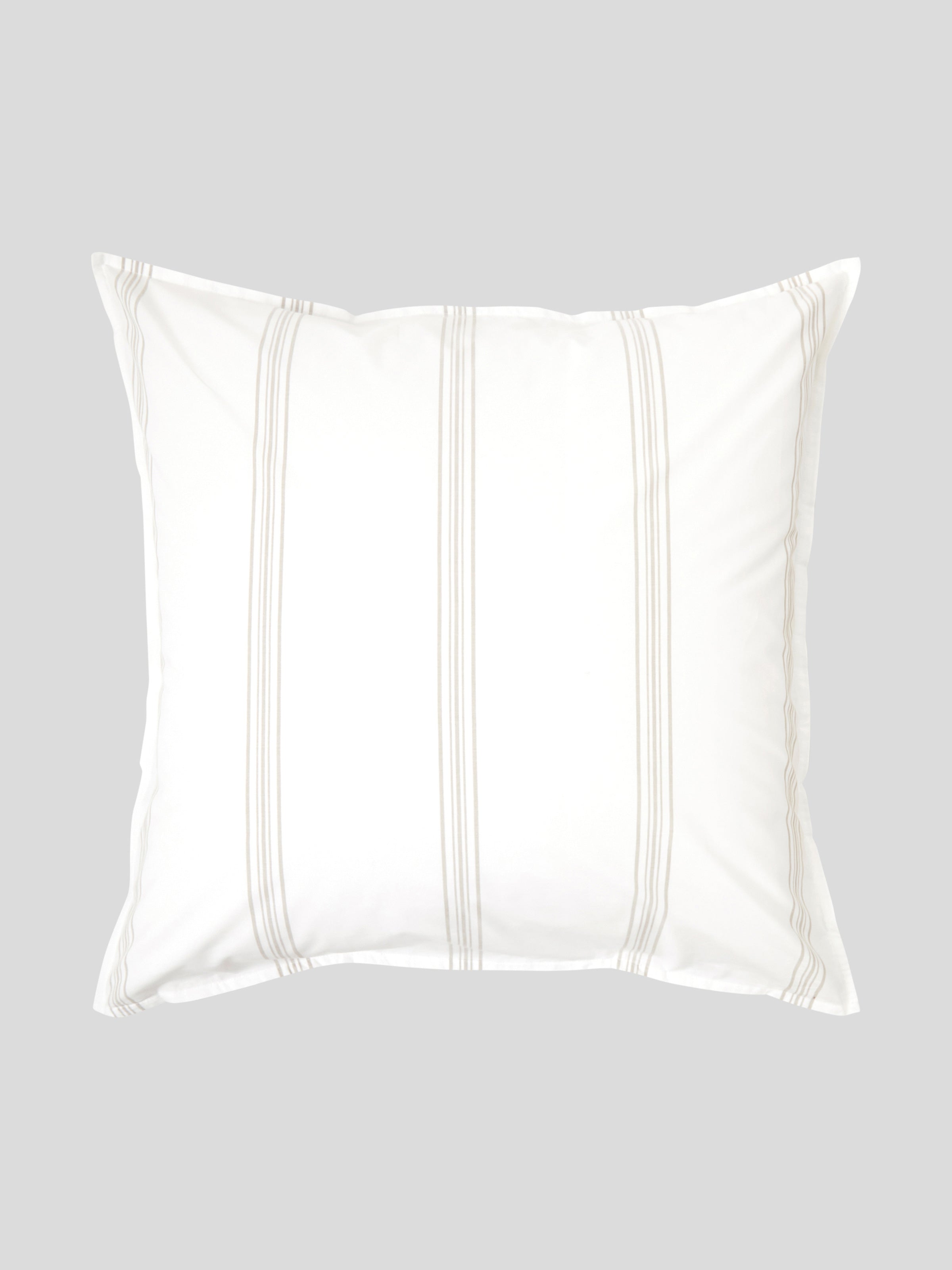 1 x European pillowcase. 65cm x 65cm + 1cm sham. Made from 250 thread count, yarn dyed cotton with button closure. Stripe design with coordinating striped design on reverse. Our bed linen has been quality checked to meet our exacting standards for size and fit. Designed with love in NZ and made exclusively for Wallace Cotton. Please follow instructions on care label for laundering.