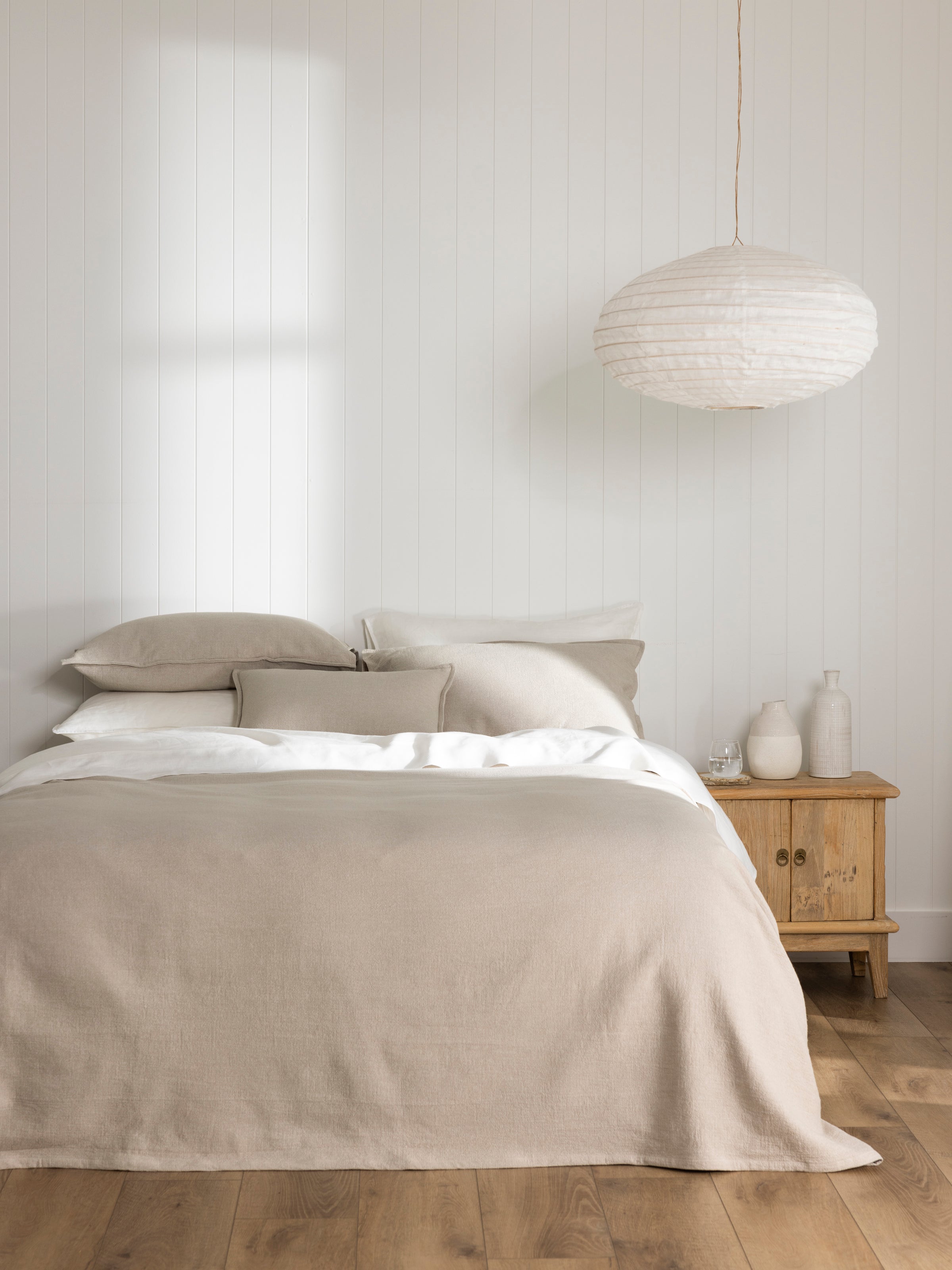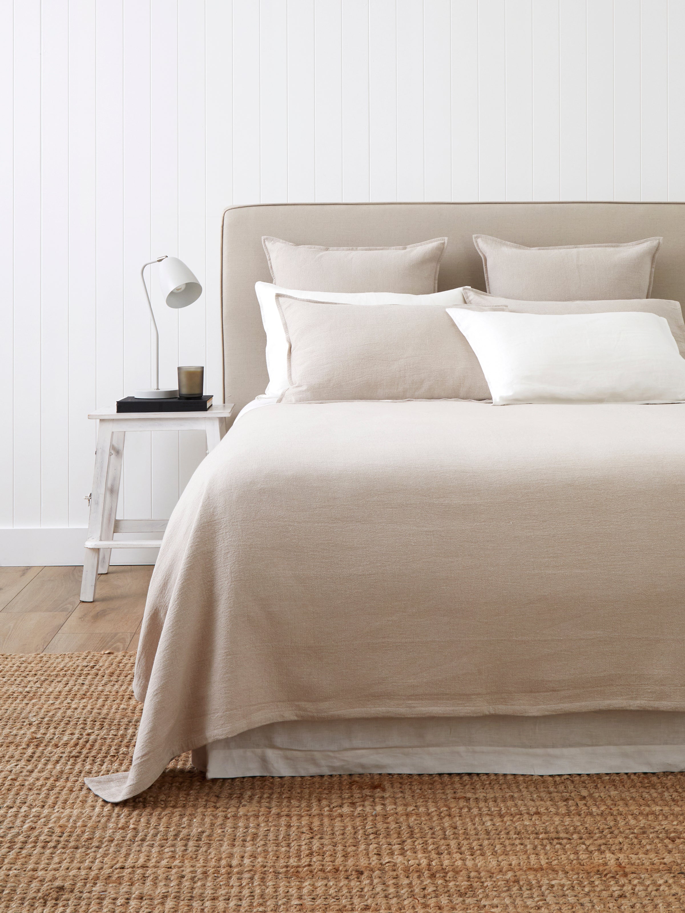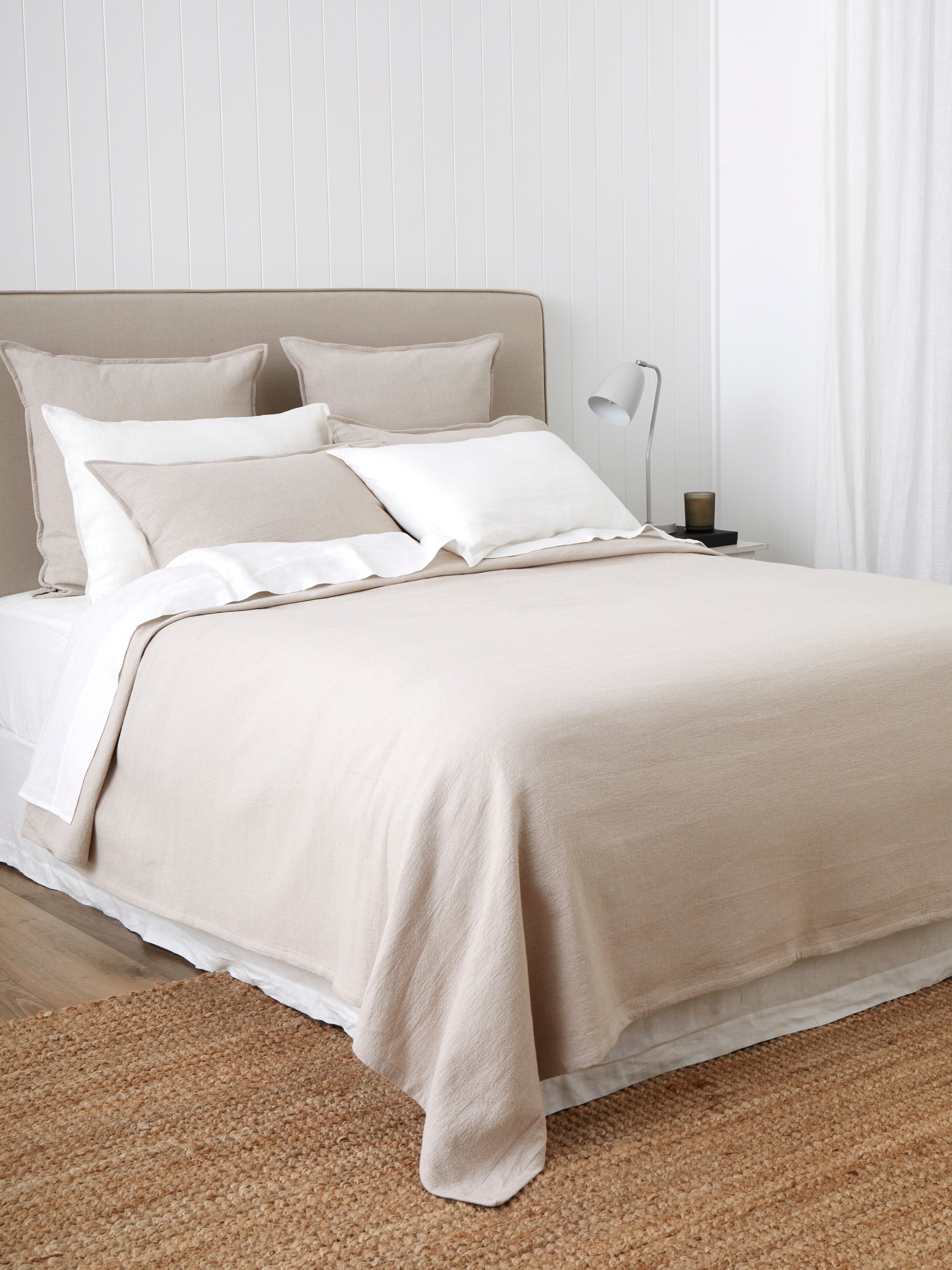 Sizes: KS: 220cm wide x 260cm long. Q: 265cm wide x 260cm long. K: 285cm wide x 260cm long. SK: 315cm wide x 260cm long. CK: 345cm wide x 260cm long. Made from 70% cotton/30% hemp in a textured matelasse weave. Our bed covers are designed to hang down the sides and end of the bed without touching the floor. Please check the measurements above before purchasing to ensure the correct fit for your bed. Please follow instructions on care label for laundering. Designed with love in NZ and made exclusively for Wallace Cotton. *STANDARD 100 by OEKO-TEX® Certification ensures manufacturers have adhered to environmentally friendly production methods. Products have been tested and proven free of harmful levels of toxic substances.