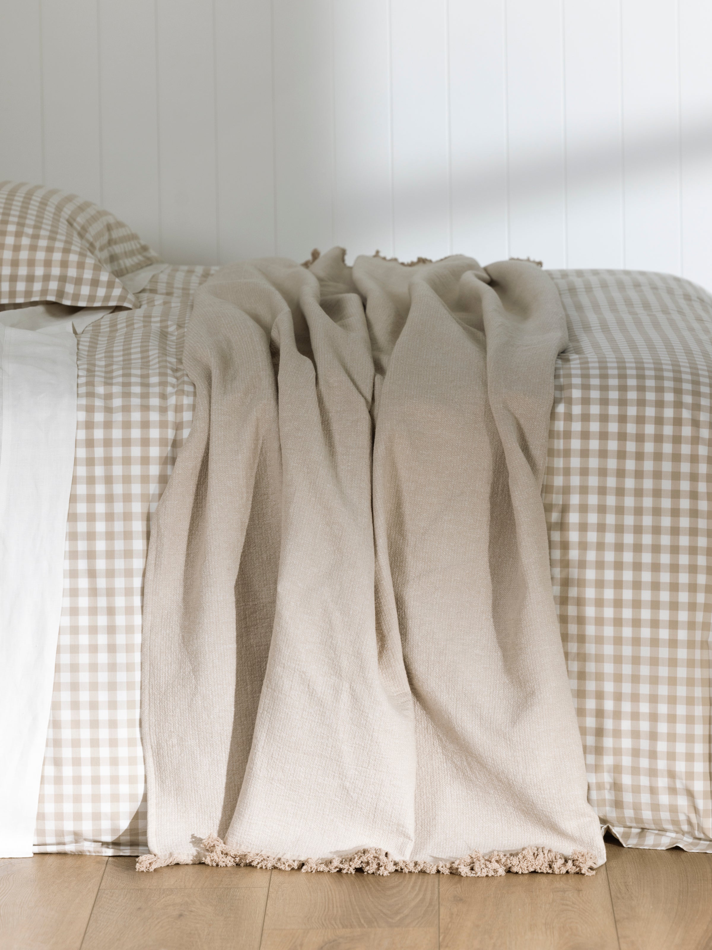 Discover elevated styling essentials for your bed and sofa with our Sirocco collection. The double cloth weave of our Sirocco Blanket is crafted from a cotton/hemp blend of planet friendly fabrics to create a lighter textural feel. In a soft natural chambray hue, our Sirocco Blanket offers relaxed, versatile styling for beautiful layering in every season. Our Sirocco collection is OEKO-TEX certified.